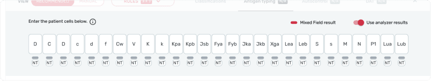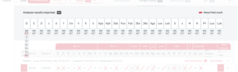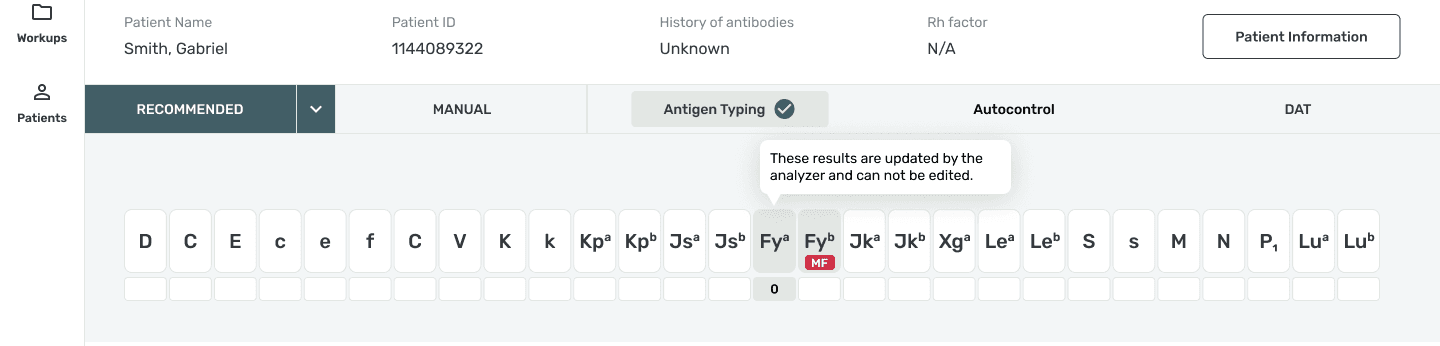Technologists can manually perform the antigen test and/or use system generated test results. For the digitized process, users need to be able to distinguish between editable fields versus system generated, view only fields.