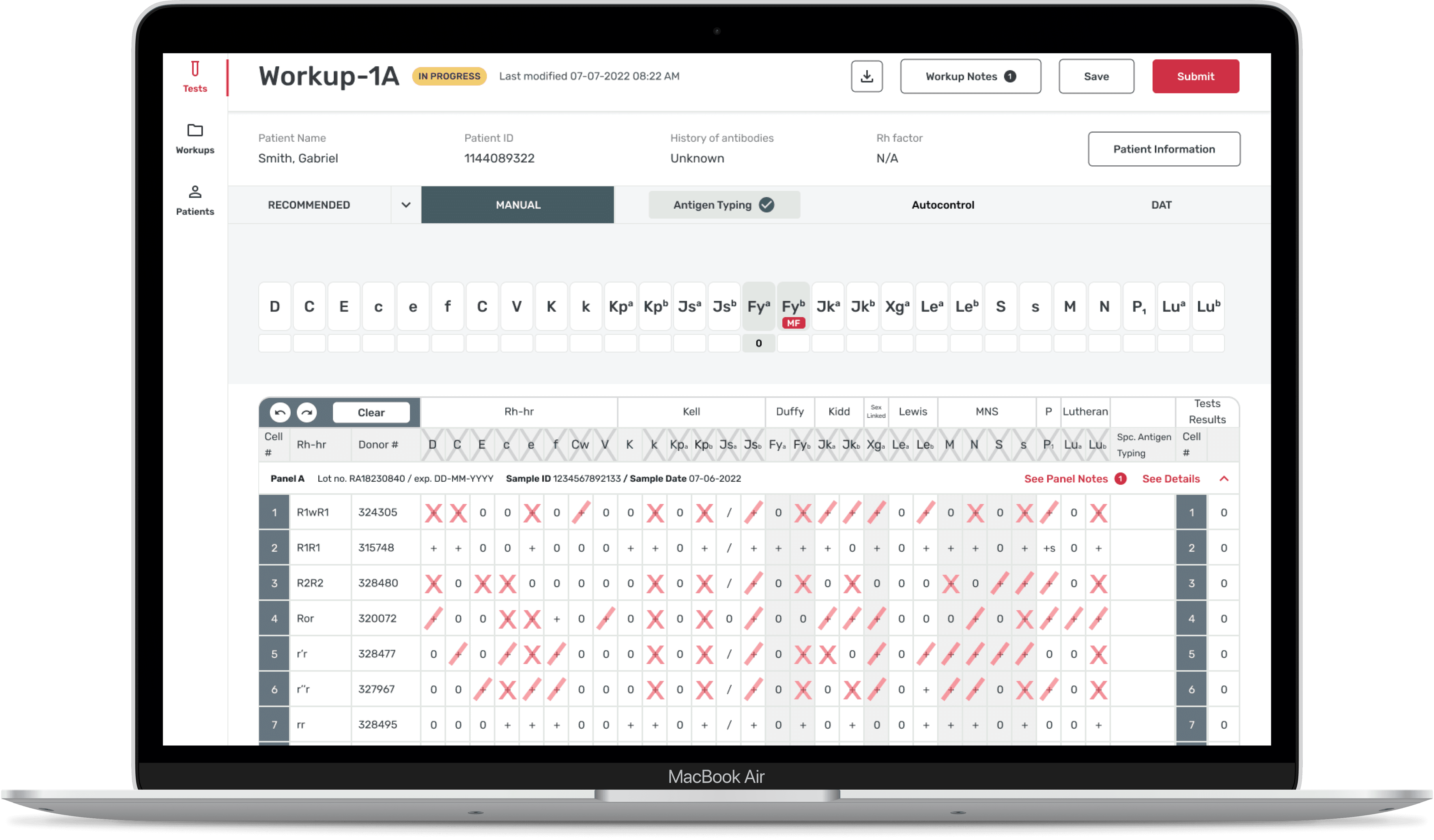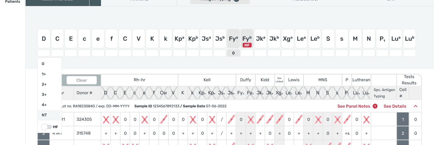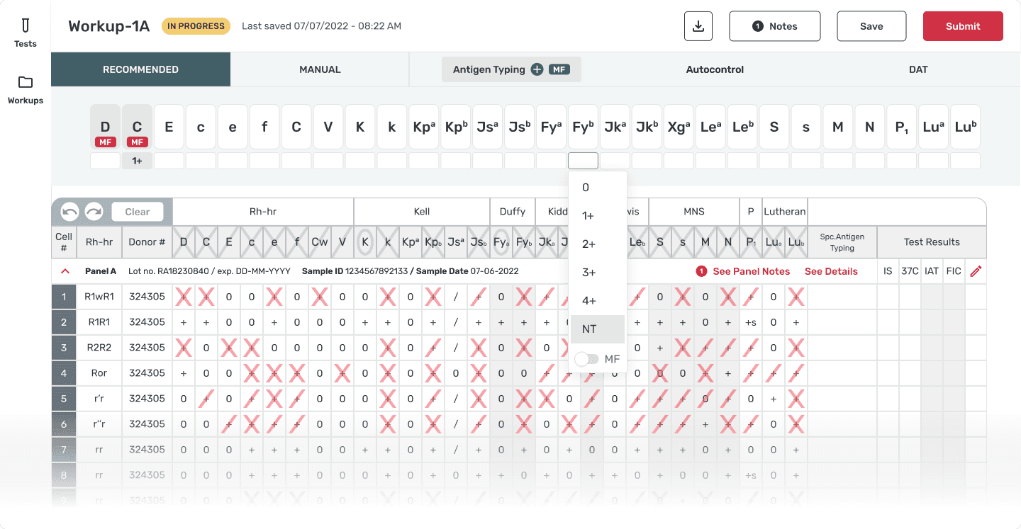 As a UX designer, I was in charge of creating wireframes for 10+ user flows. The focus of this case study is the design of the the antigen typing (“AT”) process, one of the last steps of the antibody identification process.